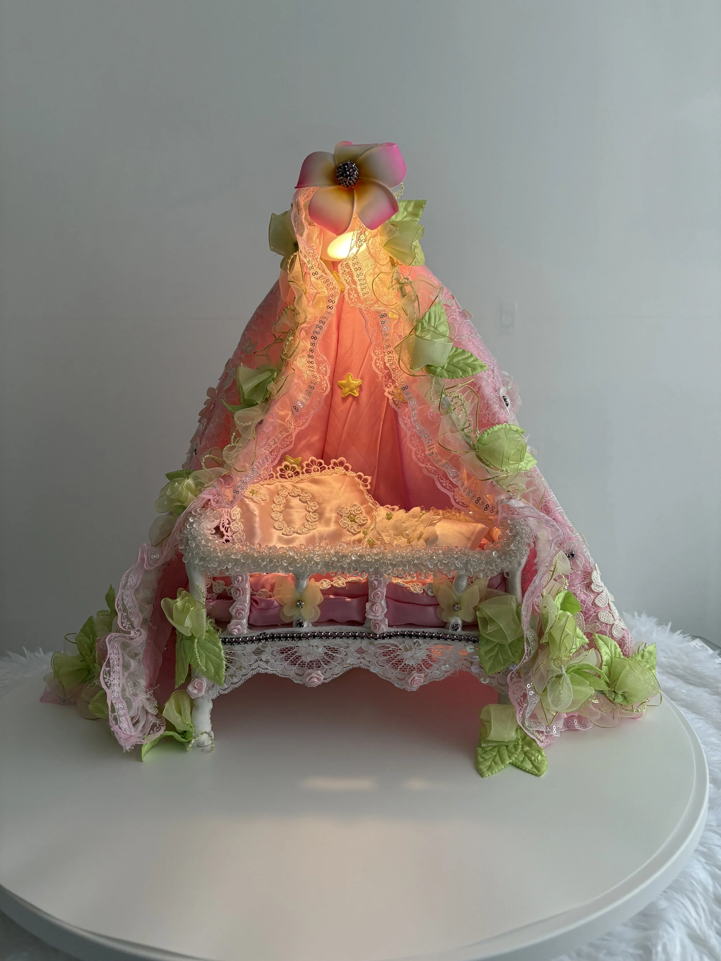 Here at cherismoment we specialize in handmade led lamps for special occasions, each and every hand made product is different from another making it unique and one of a kind. All items are constructed using a wire frame, designs of all items are all handmade with various lace and fabric and all items will differ. All lamps come with battery operated led remotes and lights that unscrew making battery changes easy. These lamps are not meant to be played with by children but rather used as a traditional bedside lamp. We spend many hours, days and sometimes weeks crafting these very special hand made lamps with love, care and passion so that you may have something unique. We also offer second hand name-branded baby clothes that have not been used and are as good as new with tags on still alongside the hand made products, we offer this as a bundle package. we have many different unique handmade lamps to choose from for your special occasion each with its own unique style. All items are sold for display purposes only and are not suitable for children as toys.